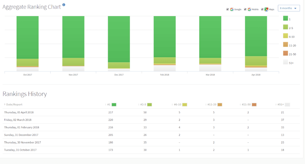 The client is currently ranking in the most prominent positions locally for main key terms.